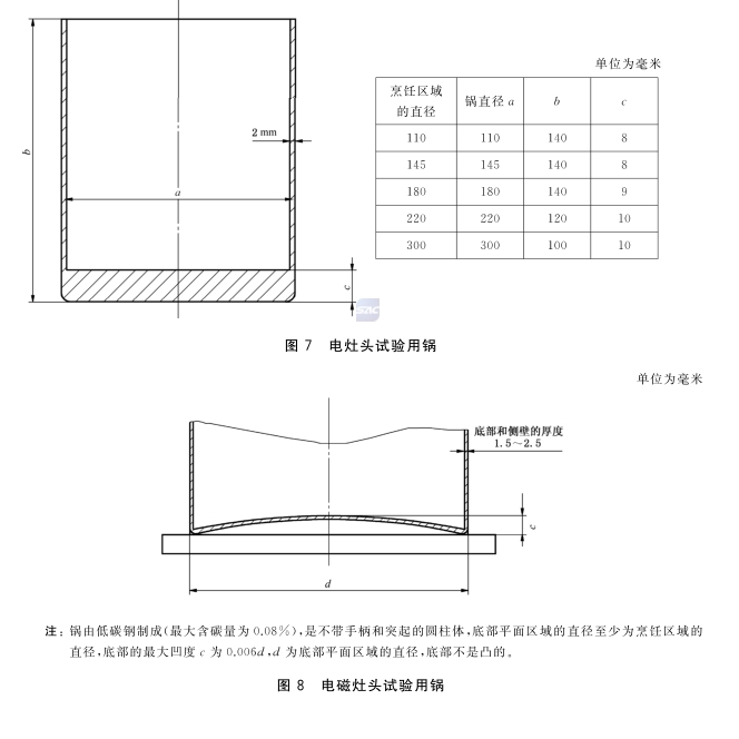 電磁灶頭按圖8選用試驗鍋,并加水至鍋深的三分之二位置。